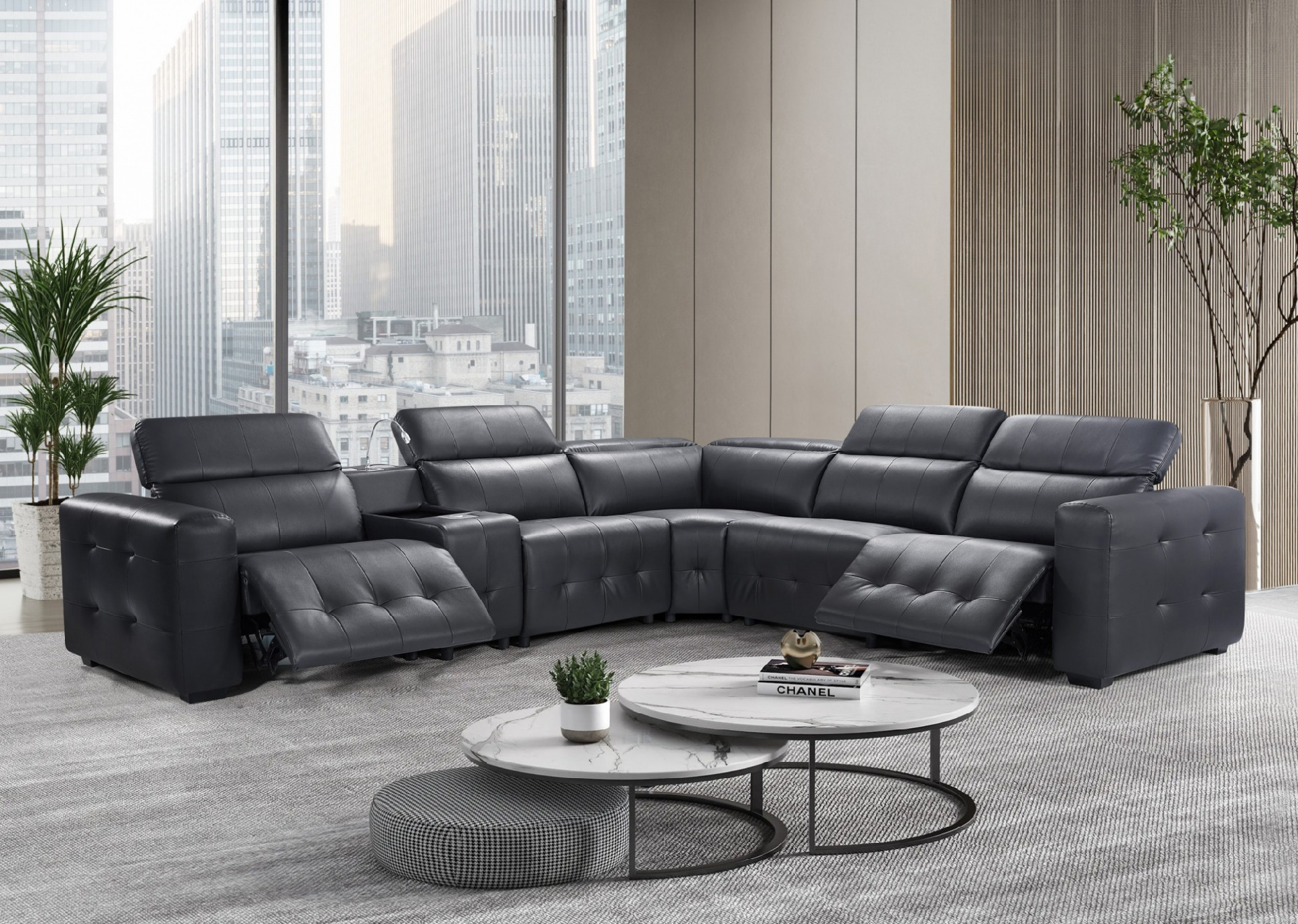 Power motion recliner corner sofa with console